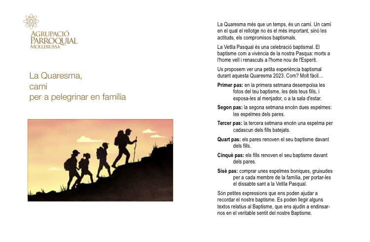 La Quaresma, camí per a pelegrinar en família. 2 de març de 2023 per Agrupació Parroquial de Mollerussa