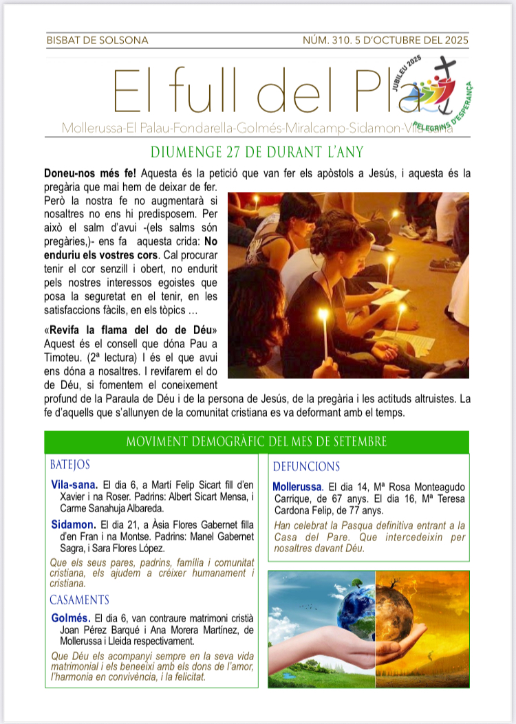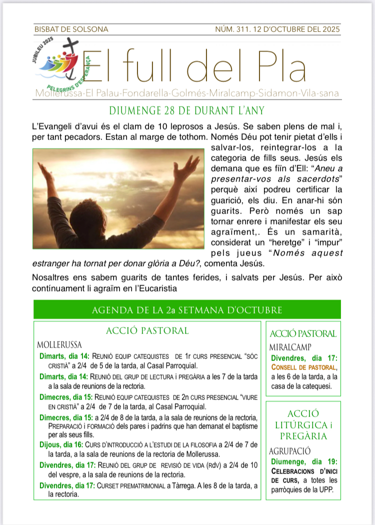 Les dades personals facilitades voluntàriament per vosté, a través del present formulari web seran tractades per Agrupació Parroquial de Mollerussa com a responsable del tractament i amb la finalitat d’atendre la seva sol·licitud, consulta, queixa o suggerència, sense que es produeixin comunicacions o traspàs de dades i conservades durant els plaços necessaris per atendre la seva sol·licitud.