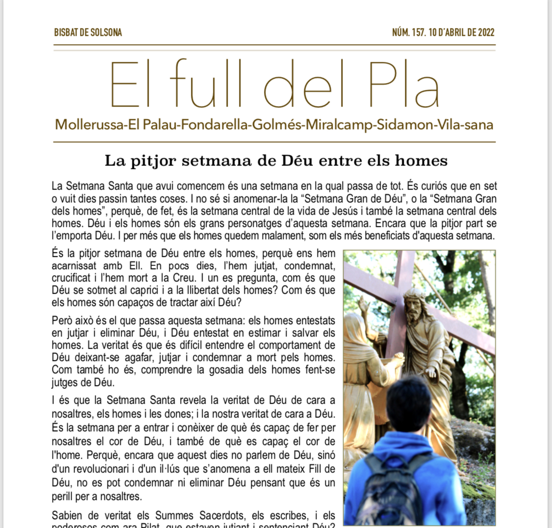 Vídeo: Pregària de la comunitat mes de març «Per la Pau al món» 25 de març de 2022 per Agrupació Parroquial de Mollerussa